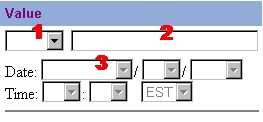 | Date/Time | Includes month, day, year, hours and minutes | Drop-down list boxes (3) |